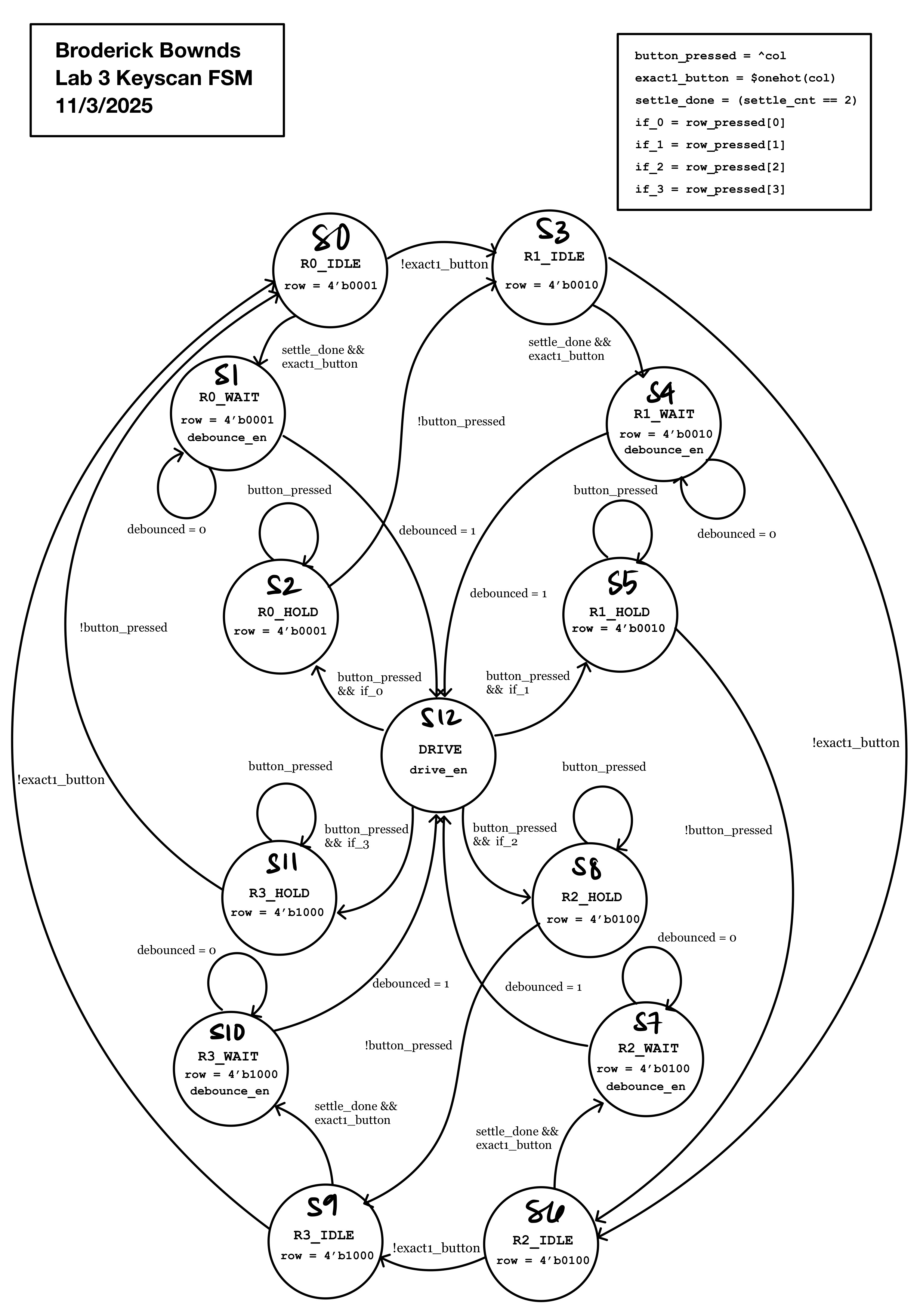 | Row | Current State | Input | Next State | row / drive_en / debounce_en |