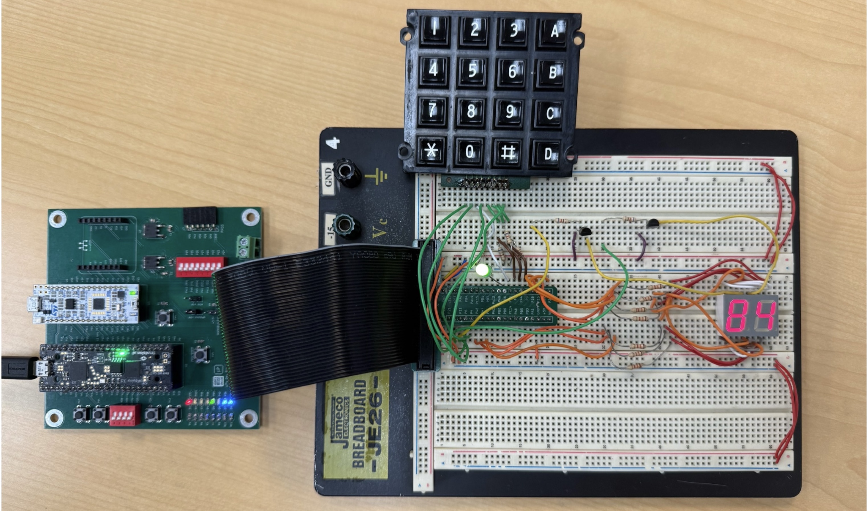 A slow clock divider reduced the 48 MHz system clock to 240 Hz, providing sufficient time between samples to eliminate switch bounce. A two-stage synchronizer stabilized asynchronous signals from the keypad to prevent metastability. The main control logic was implemented as a finite state machine (FSM) that sequentially scanned each keypad row, detected valid presses, and ensured that only one key was registered per activation.