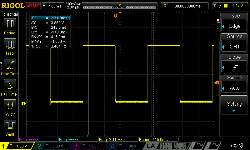 Figure 6: Screenshot of a oscilliscope waveform validating the exact frequency of 2.41 Hz.