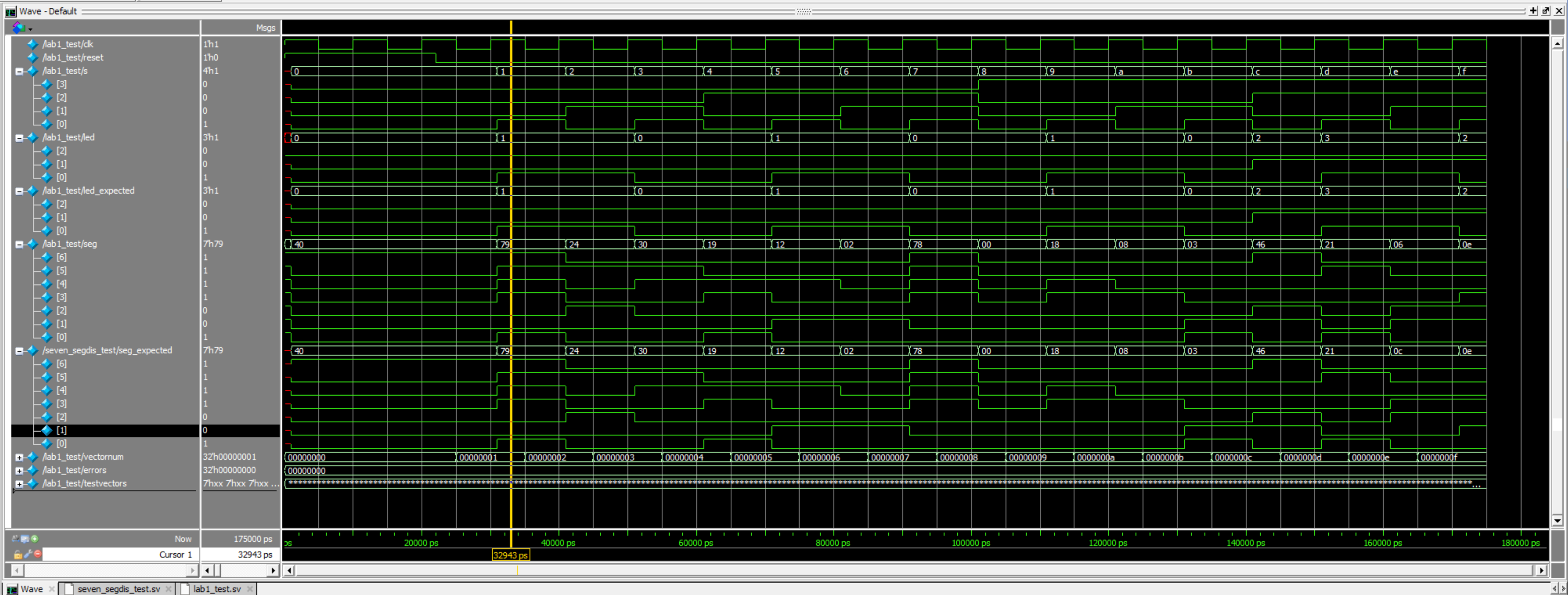 On the E155 FPGA board, the inputs and outputs are organized around the switches, LEDs, and 7-segment display. The four DIP switches s[3:0] serve as user inputs, letting you select binary values that feed into the logic of the design. The three LEDs led[2:0] provide simple output indicators: led[0] and led[1] respond to combinations of the switch inputs, while led[2] blinks at a steady rate using the FPGA’s internal 48 MHz oscillator. Finally, the seven outputs seg[6:0] drive the segments of a common anode 7-segment display, which decodes the switch settings into a numeric pattern from to 0 to F.